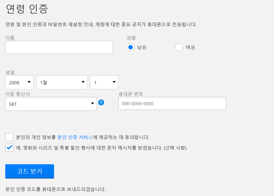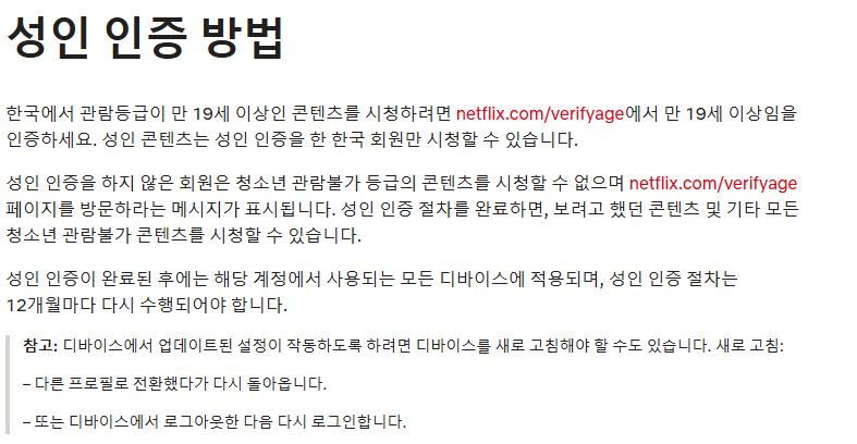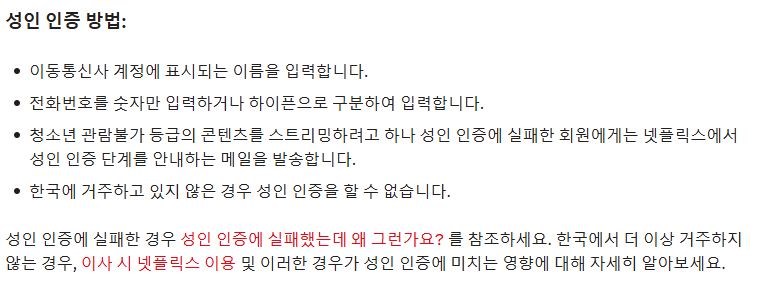 넷플릭스에서 성인 인증은 본인 인증 과정을 통해 이루어집니다.